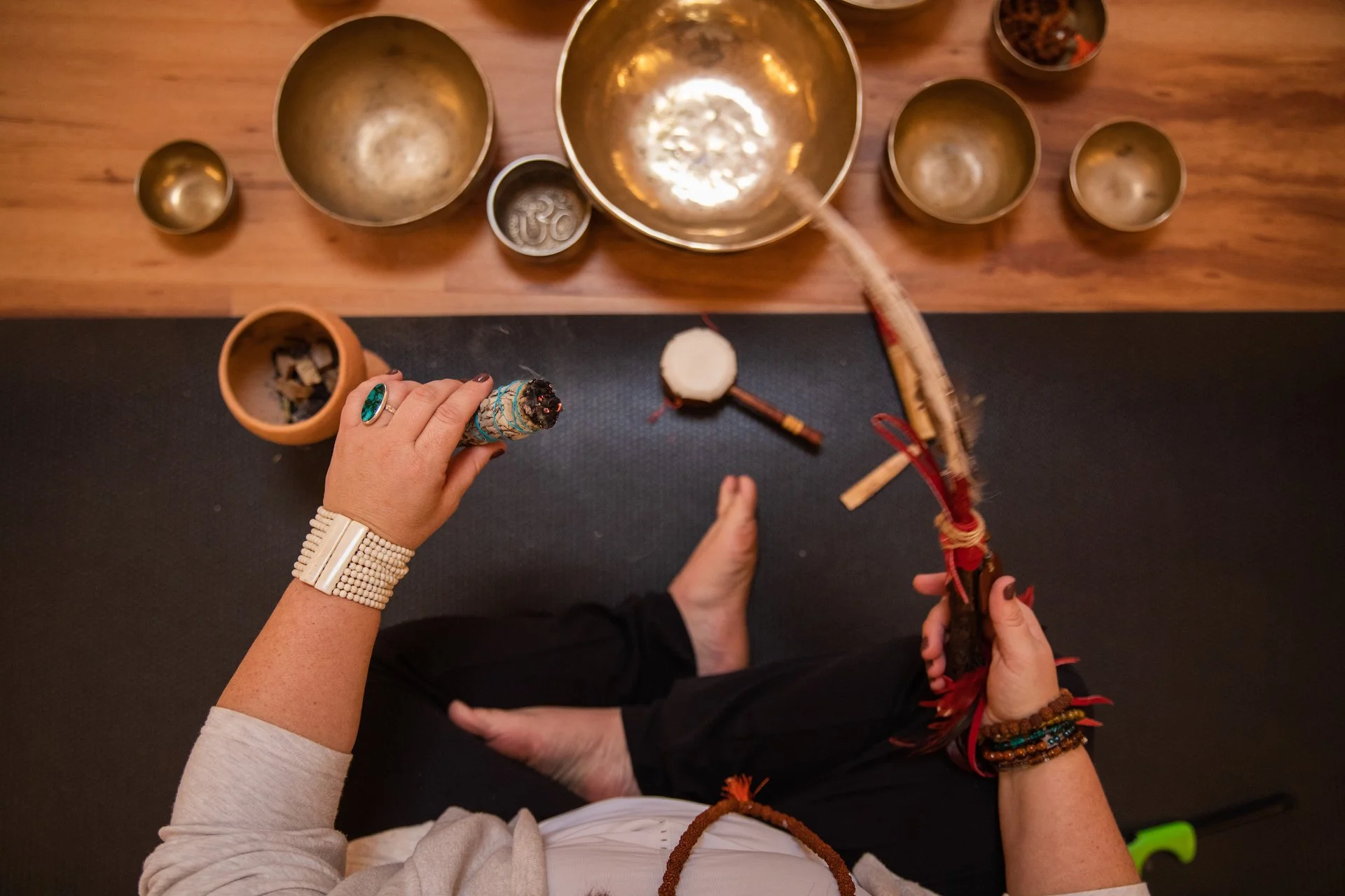 Set down your thoughts and allow yourself to settle deeply into peace during this beautiful healing session. Once we enter our parasympathetic nervous system state, we can begin to feel sound waves around us much more intensely. Often times we will allow sound to travel into the tender shadowed parts of our bodies that touch cannot access. That is the healing magic of sound and vibrational therapy. This 90 minute service can be highly customized according to your specific interests and needs. Hand-forged brass bowls from Tibet, crystal singing bowls, drums, tuning forks and other healing instruments are placed on and around your body as you enter a deep meditative state. Gentle, light body touches may include Craniosacral and Polarity techniques. Guided breath work and peaceful mind-stilling will be offered as well. Excellent for those needing to access deep relaxation and focus on inner peace through a neurological approach. This service will not include traditional massage touch.